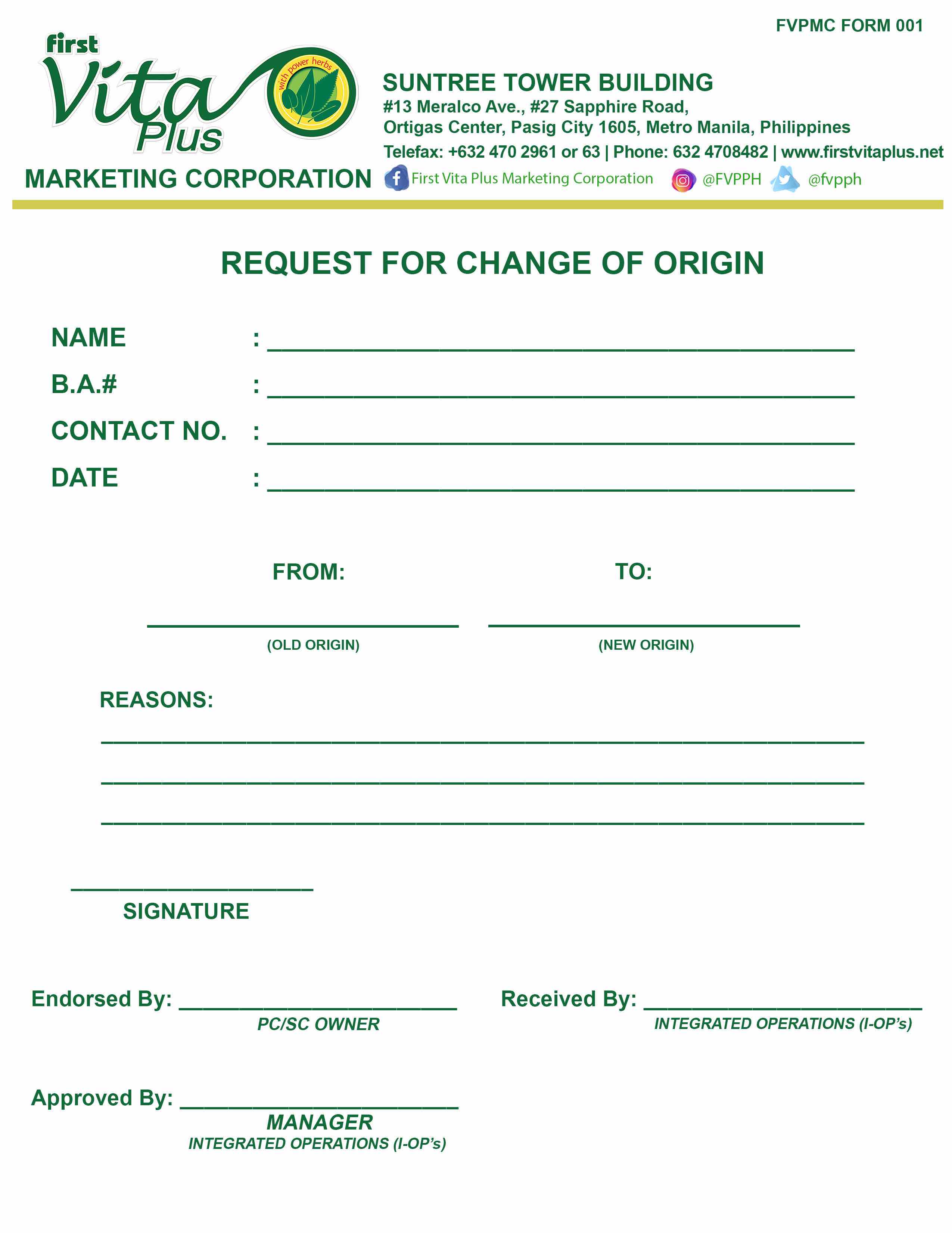 C. REQUEST FOR CHANGE OF ORIGIN FORM → View and Download